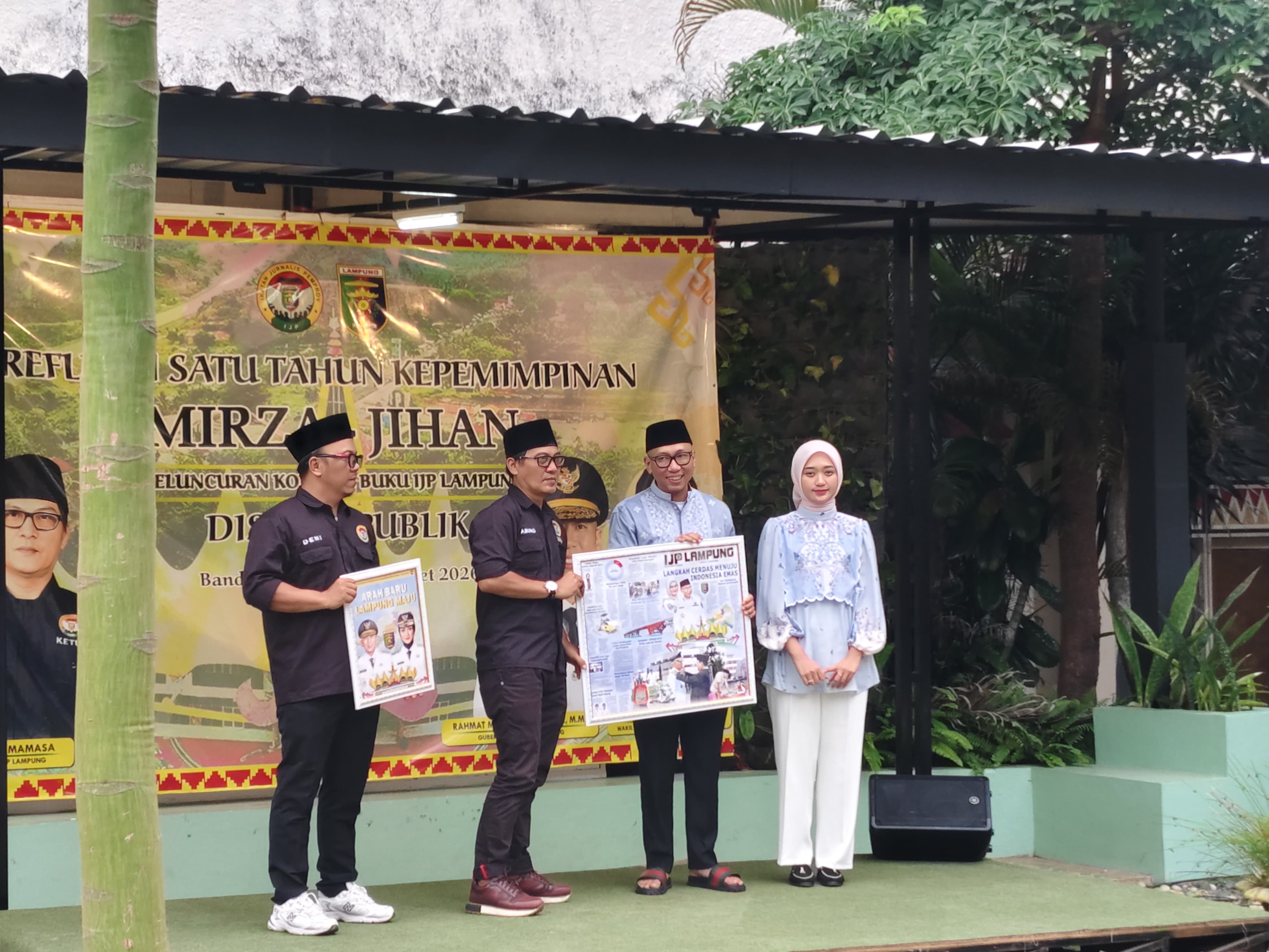 INFOLOGI.ID, BANDAR LAMPUNG — Ikatan Jurnalis Pemprov (IJP) Lampung menggelar refleksi satu tahun kepemimpinan Gubernur Lampung Rahmat Mirzani Djausal dan Wakil Gubernur Jihan Nurlela, sekaligus meluncurkan koran dan buku edisi khusus di halaman Gedung Pusiban Pemprov Lampung pada Senin, (2/3/2026).